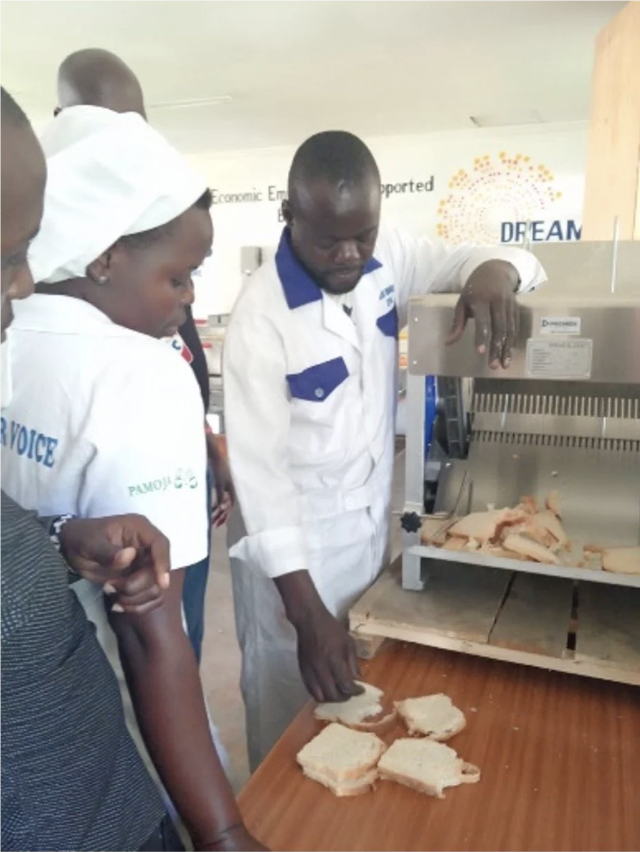 A $3,000 Rotary grant enabled key upgrades, including a commercial-grade mixer, proofer, slicer, and cooling racks. As a result, Pamoja now produces 500 loaves a day, generating approximately Ksh. 15,000 in sales and a daily net income of Ksh. 8,000. With this momentum, they expect to reach 1,000 families and double sales to Ksh. 30,000.