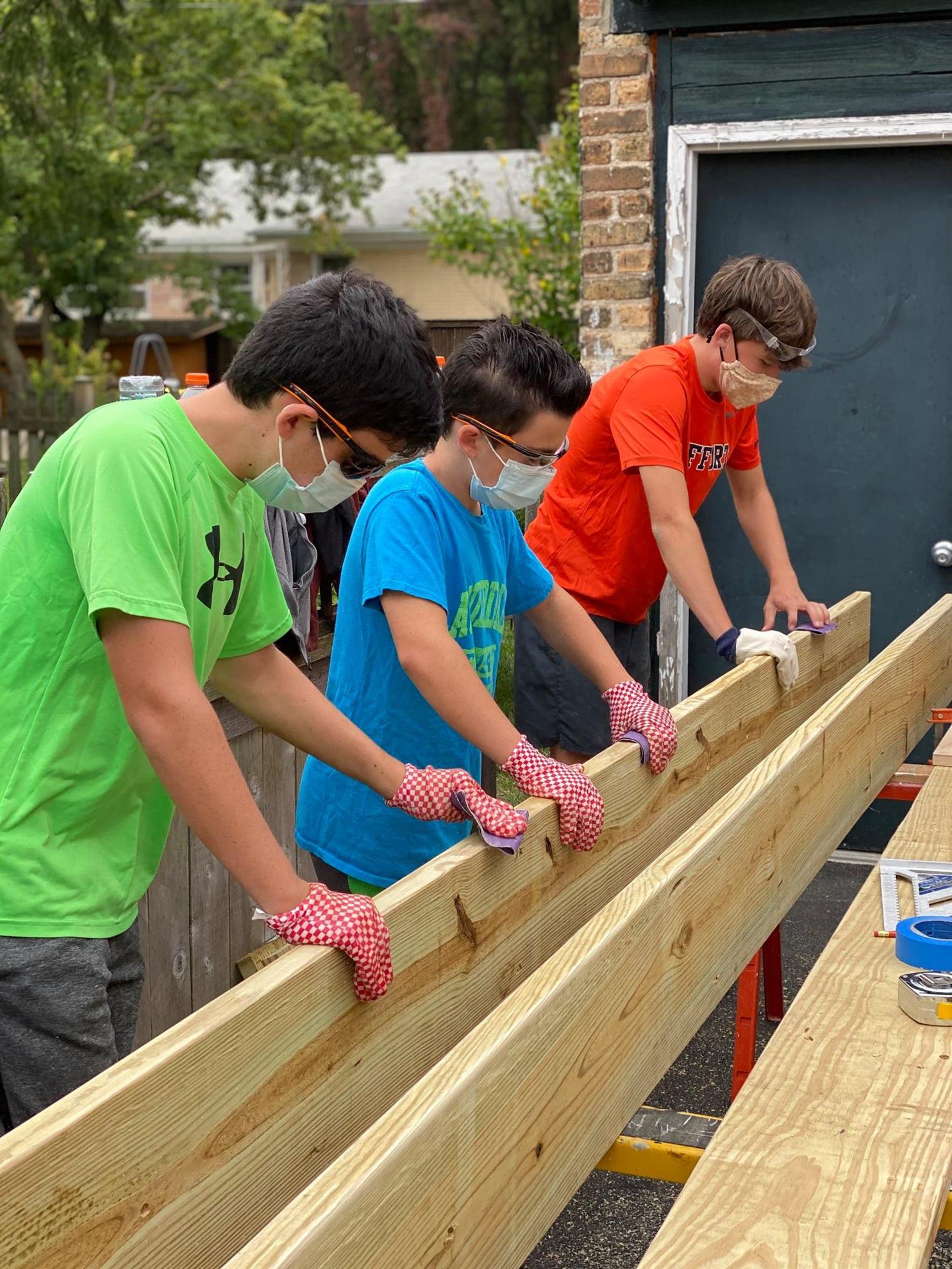 Eagle Scout beneficiaries building a Raised Garden